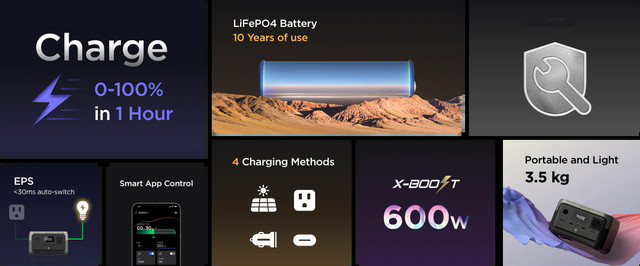 Чому б не використовувати відновлювану енергію, поки ви розбиваєте табір чи вирушаєте у подорож? Підключіть пару портативних сонячних панелей, щоб повністю зарядити акумулятор поза мережею лише за 3 години.