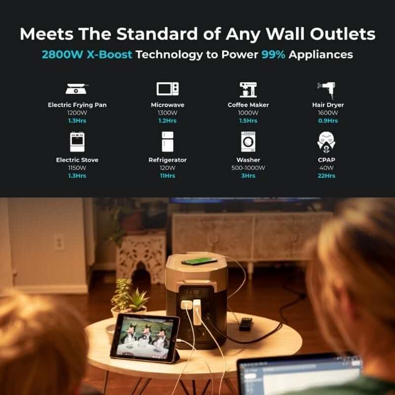 Живлення декількох пристроїв: шукаєте щось для живлення таких важких пристроїв, як-от холодильник і сушарка завдяки.X-Boost DELTA Max з легкістю обробляє пристрої потужністю до 3000 Вт.
